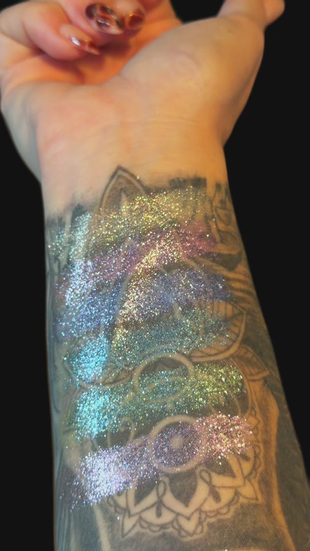 Expect a crystalline, twinkling finish rather than a smooth metallic sheen. Each shade reflects light differently depending on angle, creating a shifting, fairy like effect that catches and holds attention.