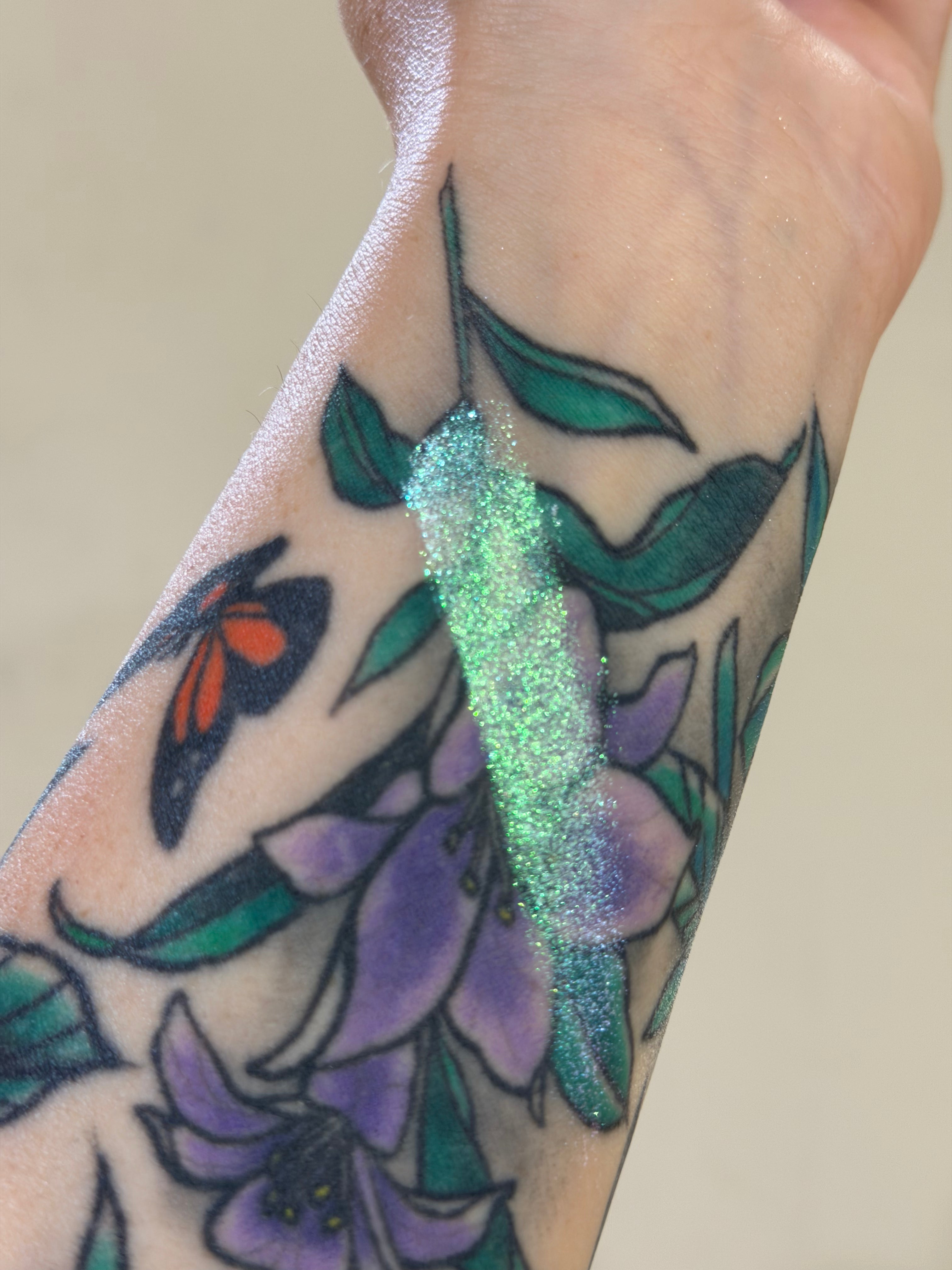 Ingredients: Silk Mica (77019), Nylon 12, Boron Nitride, Carnauba Mica (77019), Magnesium Myristate, Magnesium Stearate, Lauroyl Lysine, Zinc Stearate, Fractionated Coconut Oil (Caprylic/Capric Triglyceride), Dimethicone. May contain: Mica (77019), , Titanium Dioxide (CI 77891), Chromium Green (CI77288), Iron Oxide (CI 77499, 77491, 77492), Tin Oxide (CI 778161), Manganese Violet (CI 77742), Ferric Ferrocyanide (CI 77510), Ultramarines (77007), Blue 1 Lake (CI 42090), Yellow 5 Lake (CI 19140), Red 28 Lake (CI 45410), Red 7 Lake (CI 15850), Aluminum (77000), (Phenoxyethanol, Caprylyl Glycol, Potassium Sorbate, and Hexylene Glycol).